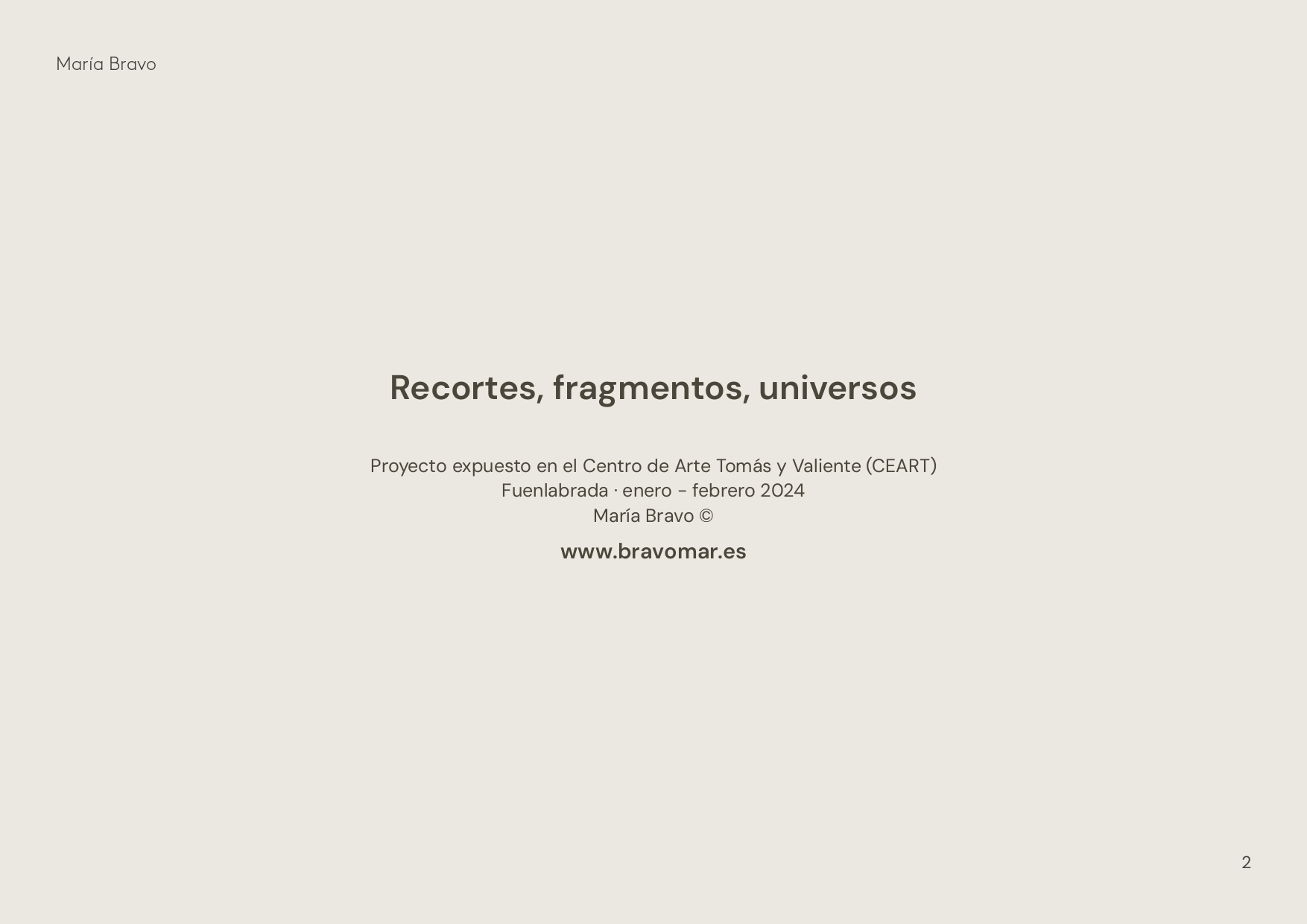 Recortes, fragmentos, universos is an invitation to reflect on the relationship between the whole and the fragmentary, between the collective and the individual. María Bravo presents a selection of works that engage with questions of the body and its (im)possible fragmentation, evoking some of the scientific and philosophical debates that have occupied so many chapters throughout history. The surprise lies in her choice of materials: almost weightless, yet endowed with a stage-like presence that unsettles and opens new lines of inquiry. The gesture is firm, while the unexpected subtlety that sustains it draws us toward a hybrid language brimming with questions. Can a fragmented body retain its essence? How does a fragmentary vision of the world shape its understanding? Is the fragment a sine qua non condition for knowledge?